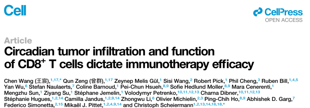 免疫疗法是现在对抗癌症最有效的手段之一,相关研究表明免疫细胞在不同时间段可表现出不同的细胞迁移特性和表型,其抗肿瘤效果会因使用的时间段不同而产生差异。近期《Cell Press》发表的“Circadian tumor infiltration and function of CD8+ T cells dictate immunotherapy efficacy”就揭示了昼夜节律对肿瘤浸润性免疫细胞的细胞数量以及细胞表型的影响,并提出了更优的细胞治疗时间段。